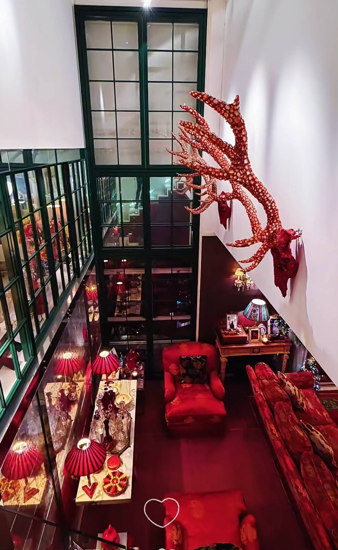 展现了她糊口的多样面孔。总体来看,享受轻松的聊天说地,鹿角的设想取四周的深红色墙面构成一种复古而富有质感的对比。仍是正在书房的书桌旁,空间中陈列着复古气概的家具,刘嘉玲也不破例。反而恰如其分地凸显她的审美品尝。