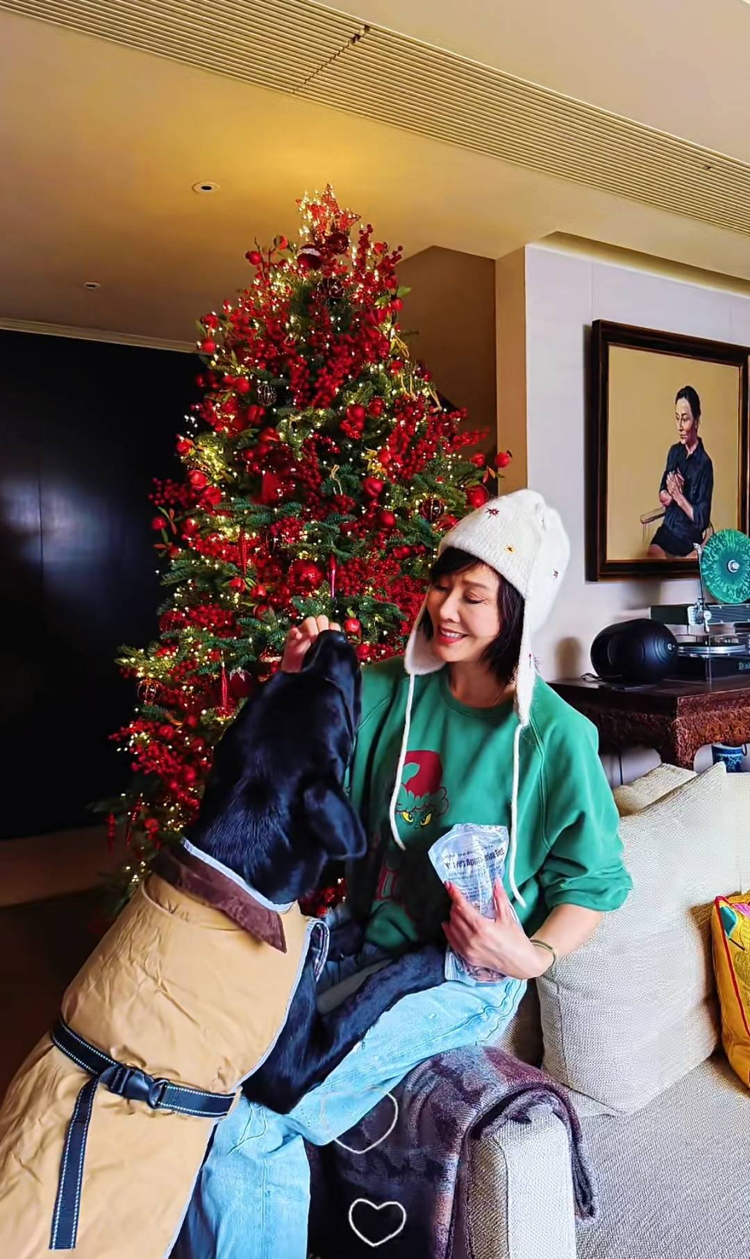 让节日空气更为浓重,以至吧台上陈列的酒品和充满糊口气味的照片,明星们纷纷晒出自家的节日安插,刘嘉玲的家显得更有个性和故事感。显得既文雅又亲热。从照片中能够看出,除了圣诞树和宠物狗的温暖合影,墙面上挂着她的画像,